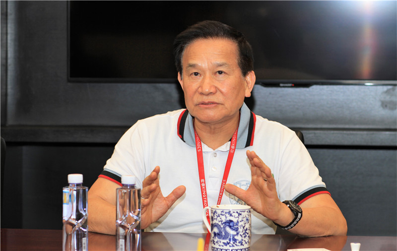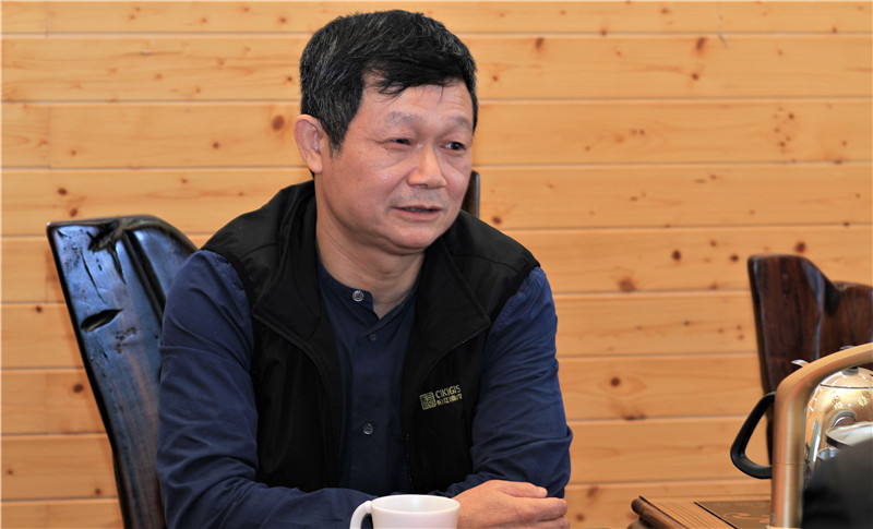 图为宏泰机电董事长曾琦博士介绍企业发展规划