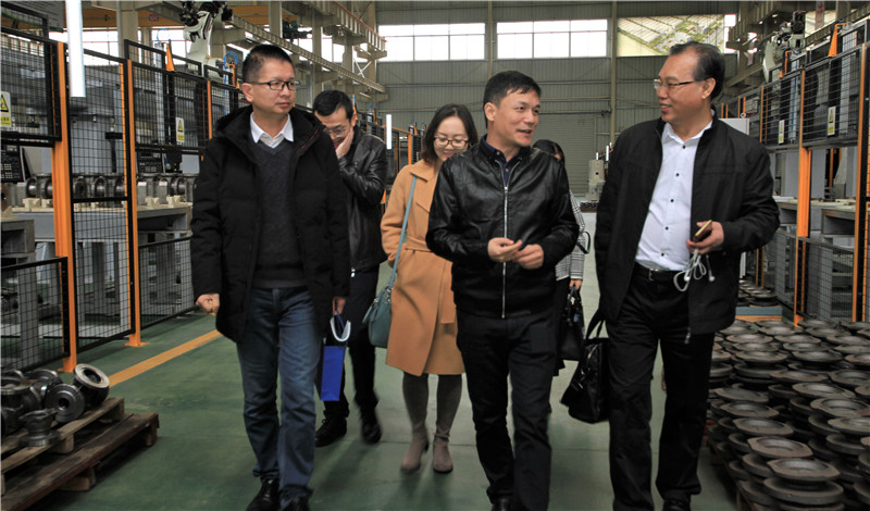 图为工作组与宏泰机电董事长曾琦博士(右三)合影