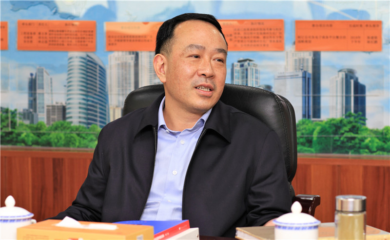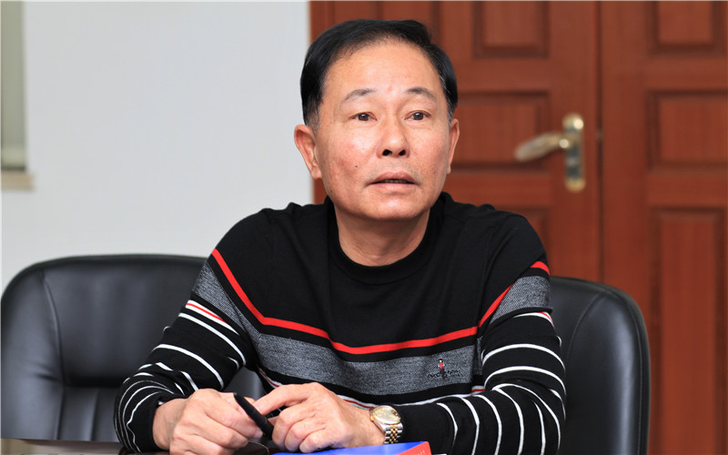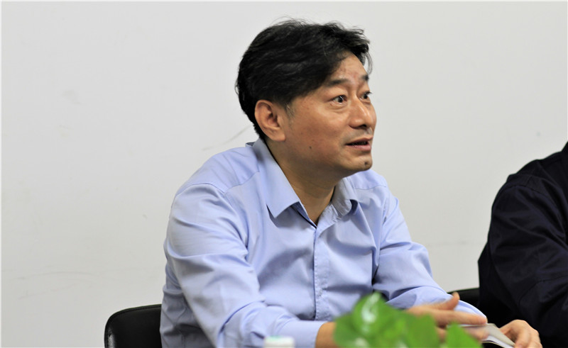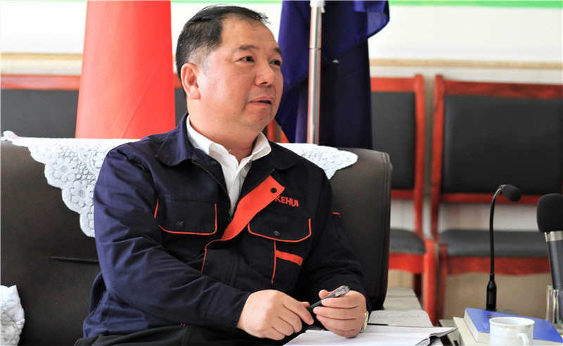 图为昌龙汽车总经理唐有朝介绍企业发展现状