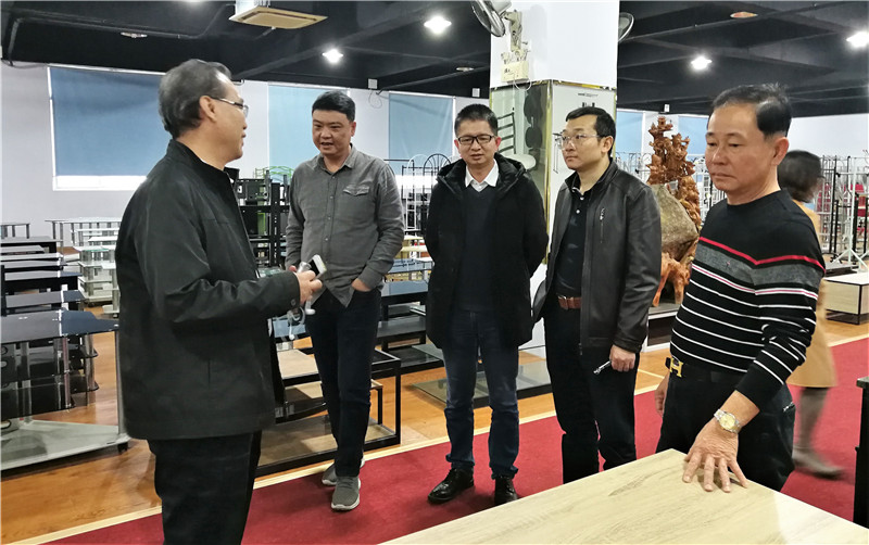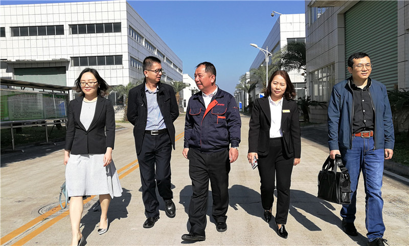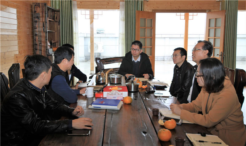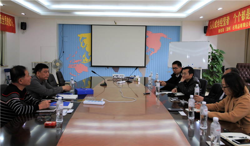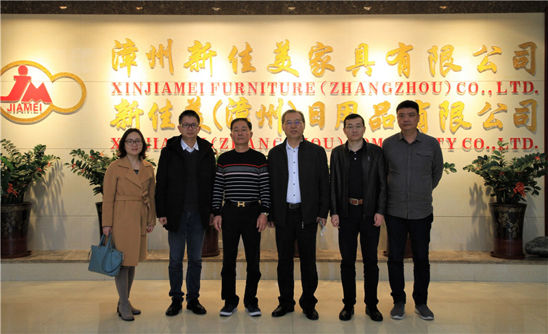 图为工作组与新佳美董事长郭佳(左三)等人合影