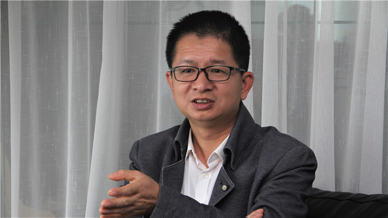 图为和动力智能科技公司董事长佘漳南介绍企业发展情况