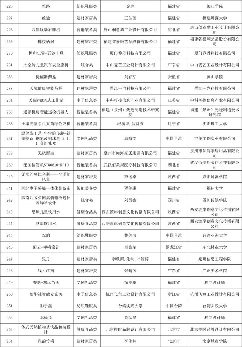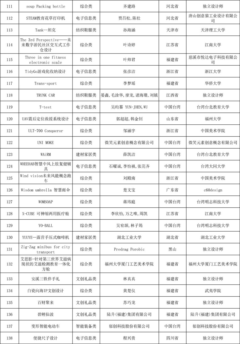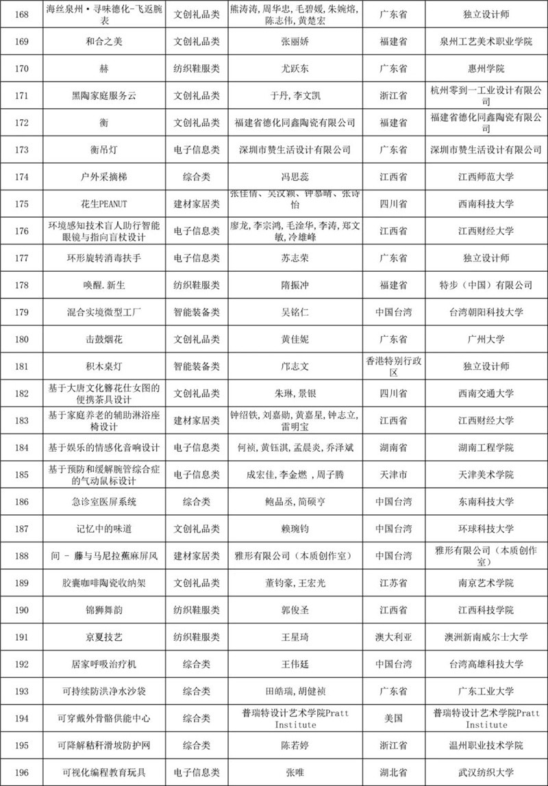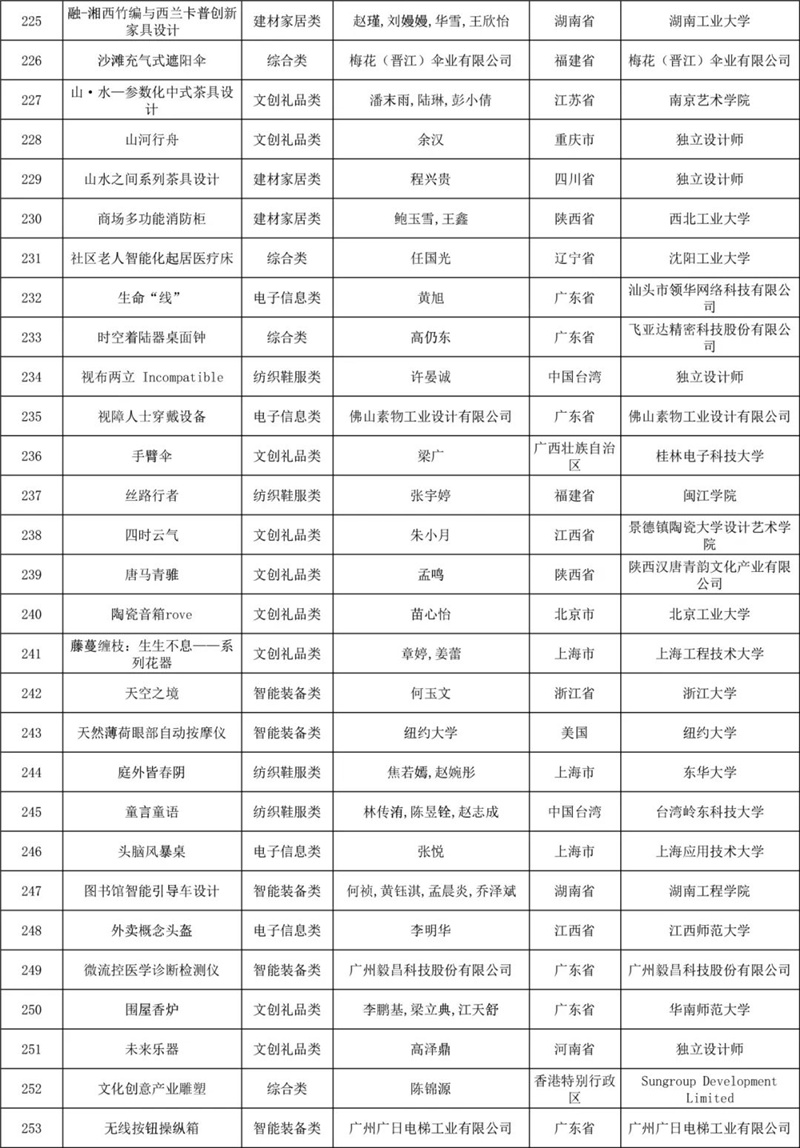 经专家初评,评选出产品组、概念组两个组别初评入围作品各300件,共计600件作品,其中大陆初评入围作品495件,港澳台初评入围作品76件,国外初评入围作品29件,初评入围作品覆盖46个国家或地区。