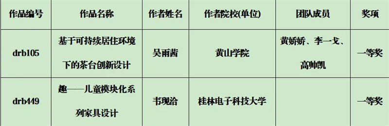 现将首届“东荣杯” 海峡两岸家具工业设计创新大赛获奖名单公告如下: