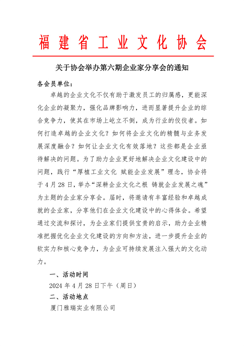 关于乐玩(中国)举办第六期企业家分享会的通知