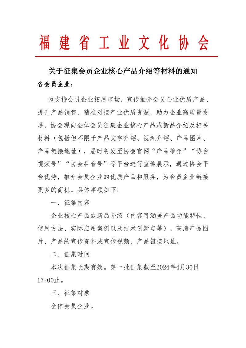 关于开展会员企业线上产品推介工作的通知