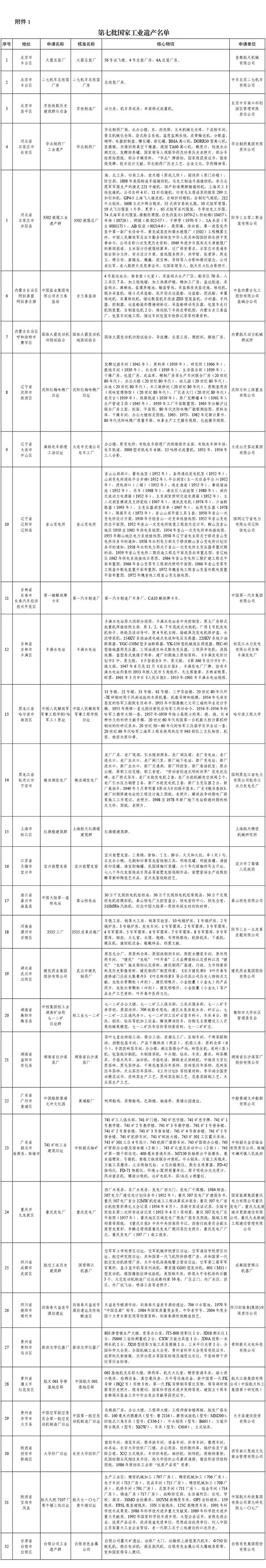 1.第七批国家工业遗产名单