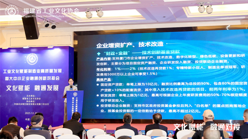 12月26日下午,由乐玩手机版app主办、中国农业银行股份有限公司厦门市分行协办的“工业文化赋能制造业高质量发展暨大中小企业融通创新对接会”在厦门成功举办。