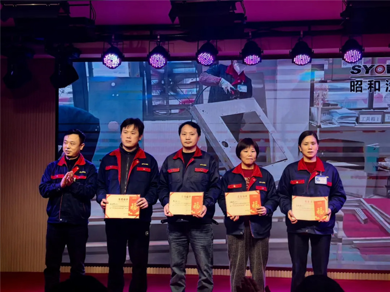 晚宴以技能大赛精彩花絮乐玩(中国)开篇,管理干部一同上台领唱《腾飞吧,昭和》,台下家人齐声合唱,瞬间点燃现场氛围。